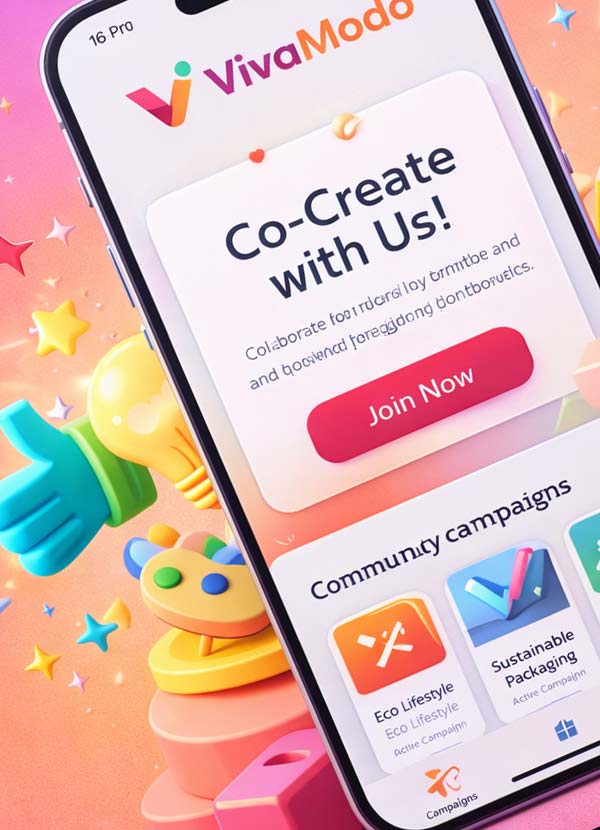 CommunityForge ermöglichte es VivaModo, gemeinsam mit seiner Community in großem Maßstab zu co-kreieren. Wir entwickelten ein strukturiertes Ökosystem, in dem Creators, Kunden und Teams über geführte Workflows, KI-gestützte Kreativität und gamifizierte Beteiligung zusammenarbeiteten.