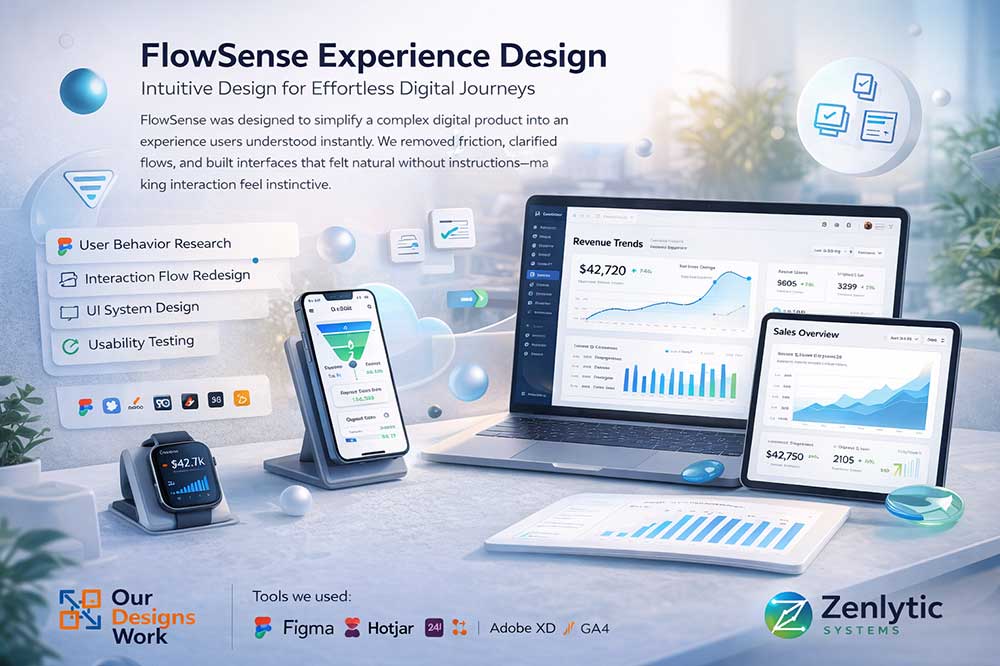 FlowSense wurde entwickelt, um ein komplexes digitales Produkt in ein Nutzererlebnis zu verwandeln, das sofort verständlich ist. Wir reduzierten Reibungspunkte, vereinfachten Abläufe und gestalteten Interfaces, die sich natürlich anfühlen – ganz ohne Erklärungen.